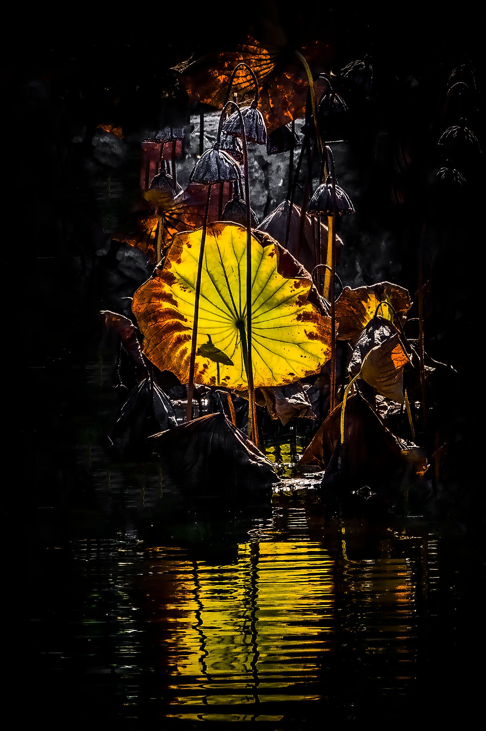 殘荷之二 -- 杭廷頓流芳園10月底的殘荷, Residuale Lotus at Hunting Liabrary Garden in Late Octorber